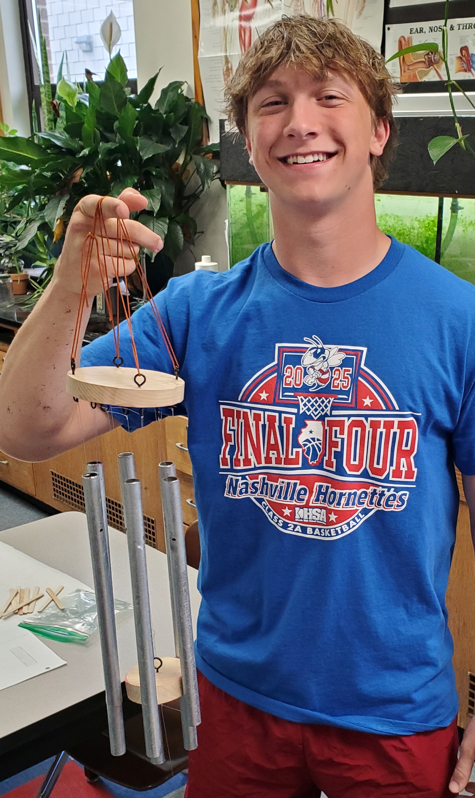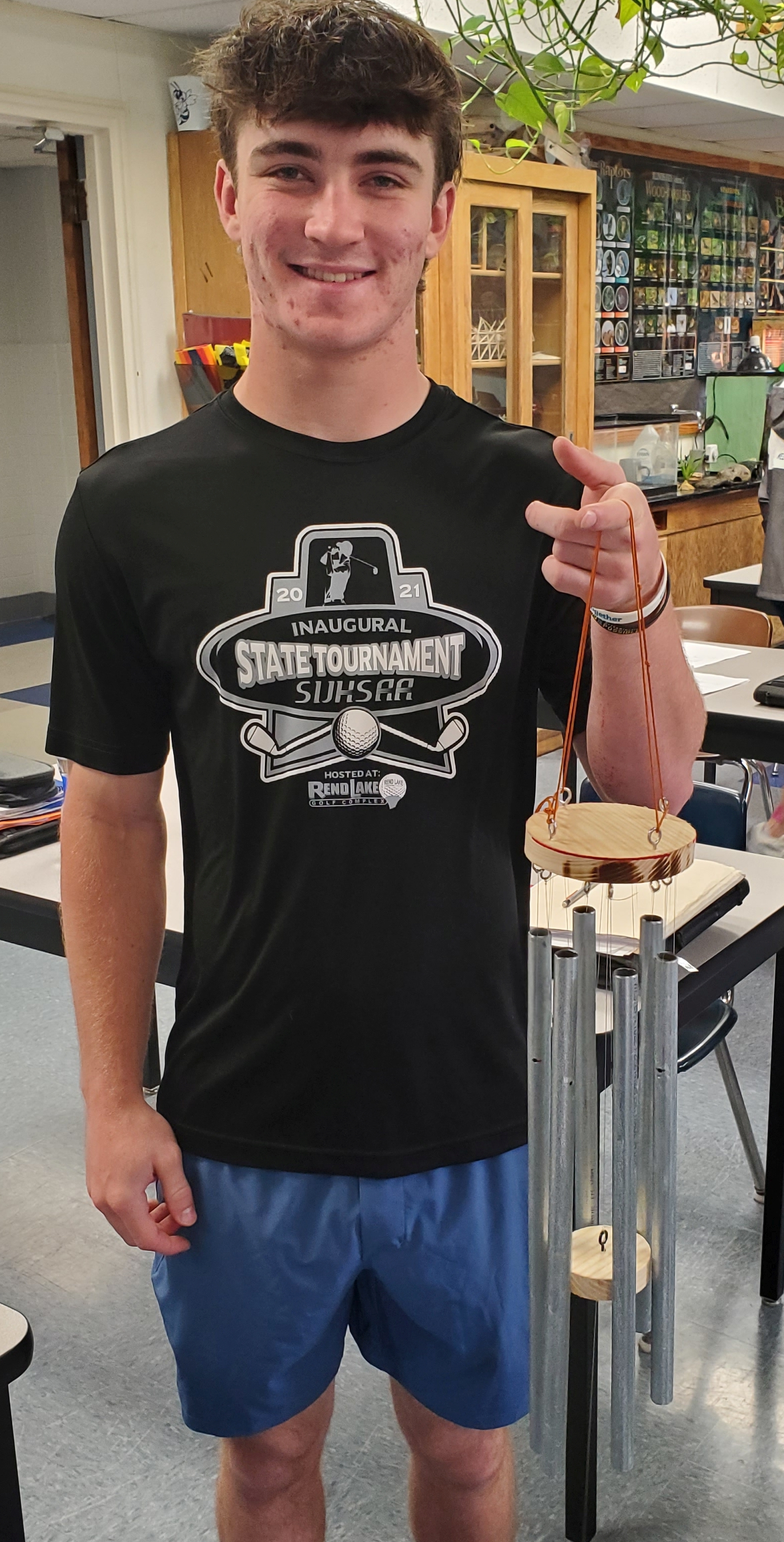 Instructor, Mr. Calvin O'Rear, used wind chimes as a DIY wave learning activity for the WAVES section of the physics class. Pictured below are some amazing accomplishments by class members. Note the 3D printing for a few strikers and the additional creativity.