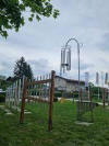 Robert is very pleased with the sound from his repurposed sailboat booms, one at 4.5" and the second at 5" diameter. The longer chime is 70". The wind sail is from a 1987 Ford Police car. They make an attractive addition to the water front and should easily survive storms.