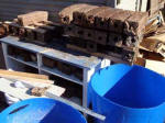 Briquettes fall down thru the rusty vertical air sealed stack to rest on